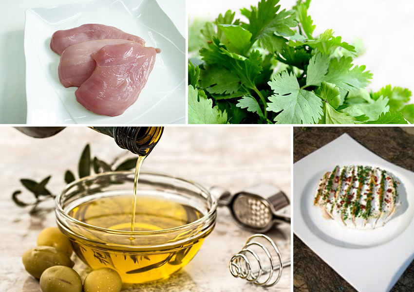 Pieptul de pui se unge cu ulei de masline si se prajeste pe gratar. Dupa ce se prajeste, condimentati-l cu sare si piper si taiati-l fillet.