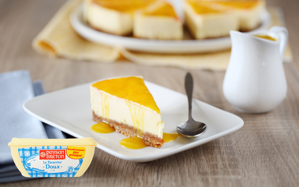 Pentru poftă de ceva dulce, un gust surpinzător și delicios, încearcă rețeta noastră de cheesecake cu piure de fructe tropicale și unt de la Paysan Breton. Aromele minunate ale mango-ului și fructului pasiunii vor face din acest cheesecake un adevărat răsfăț al papilelor gustative.