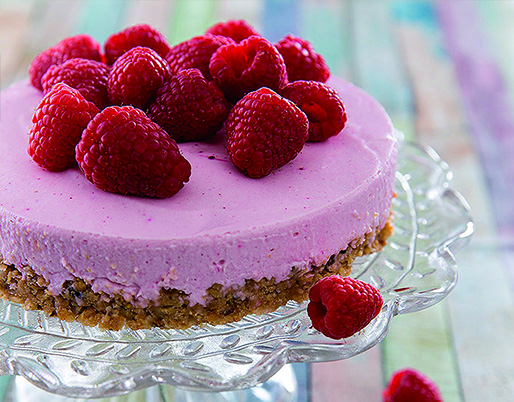 Servirea este simplă: scoateți desertul din formă și decorați-l cu zmeura rămasă.