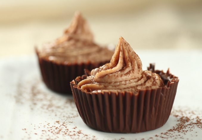 Umpleti formele de briose obtinute din ciocolata cu crema de mascarpone folosind sacul de patiserie. Presarati putina cacao deasupra si sunt gata de servit!