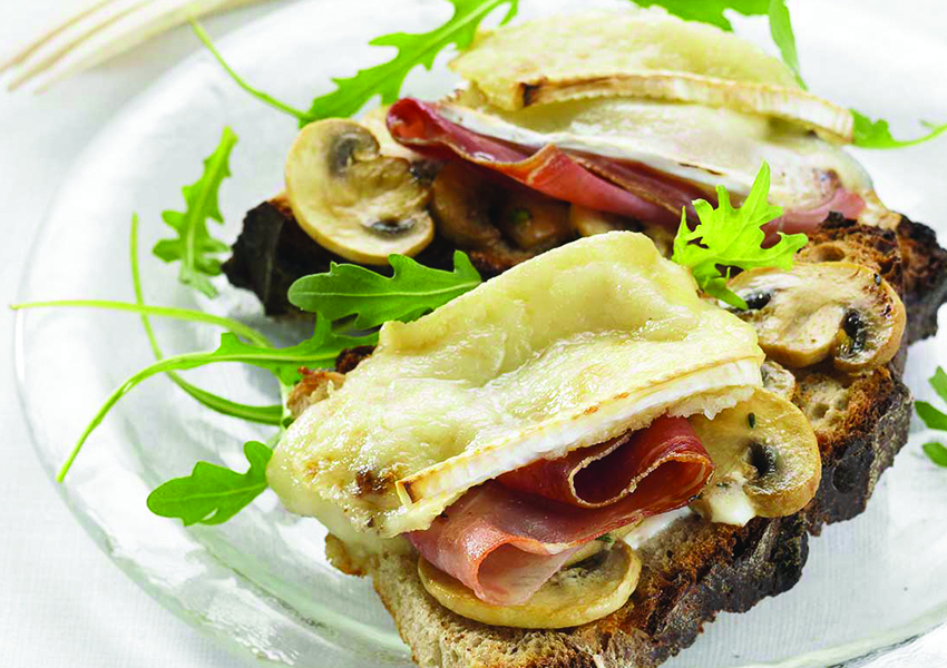 Preincalziti cuptorul si puneti ciupercile pe feliile de paine. Taiati branza Brie in felii de aproximativ 3mm si adaugati-le peste feliile de paine si ciuperci. Adaugati sare si piper si puneti-le la cuptor pentru 3-4 minute.
