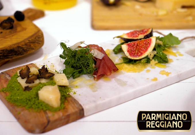 Chef Dexter, sau Bogdan Alexandrescu dacă vrem să fim formali, a pregătit o rețetă simplă și D-E-L-I-C-I-O-A-S-Ă de aperitiv cu Parmigiano Reggiano pus cu delicatețe în lumină, într-o combinație mediteraneană surprinzătoare.